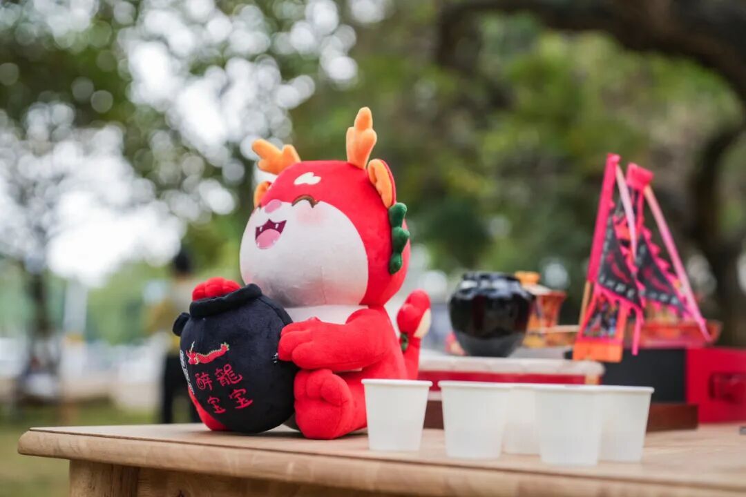 在正式上线前,“醉龙宝宝”已提前展开预热:它相继亮相于大湾区文采会、中山草莓音乐节、首届乡村咖啡节;2026年春节,街道文旅推广员专程赴上海进行市场调研,为“醉龙宝宝”的全面推出做好充分准备。作为醉龙舞的保护单位,西区街道坚持非遗的活态传承与社会化参与。此次再度携手荔景苑,聚焦年轻群体的审美与情感需求,将非遗符号深度融入日常生活用品,实现了醉龙IP从视觉形象、味觉体验到触觉陪伴的全维度拓展,有效延伸了非遗文化的传播路径。