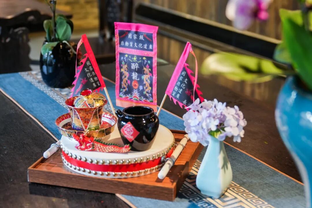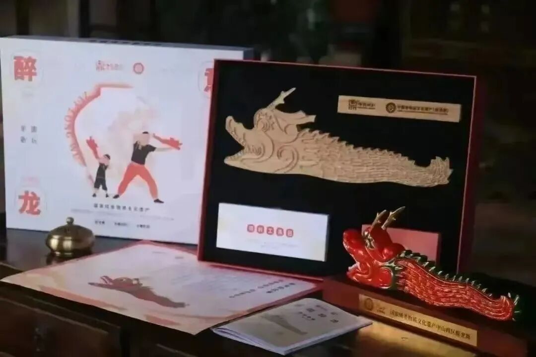 近年来,西区街道持续探索“非遗+文创”“非遗+文旅”的融合新模式,陆续推出醉龙摆件、“意趣醉龙”研学套装、醉龙宴、醉龙咖啡及相关文创手信等一系列产品。其中,“意趣醉龙”非遗研学套装入选2023年中山市十佳旅游手信,醉龙树脂摆件获评2024年中山特色旅游商品;醉龙咖啡产品深受粤港澳大湾区游客喜爱,并吸引香港TVB明星组团到访体验。相关文创产品多次亮相广东旅博会、广货行天下等重要展会,向全省乃至全国展示了西区醉龙非遗的当代创新成果。